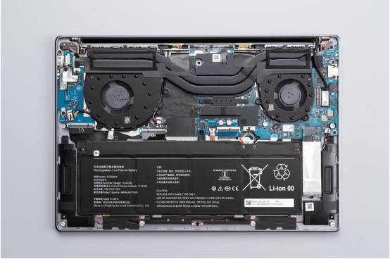 拆机图,双风扇双热管散热,采用的全新飓风散热系统,重新设计了散热结构,优化风路,从考机情况来看,表现让人满意。