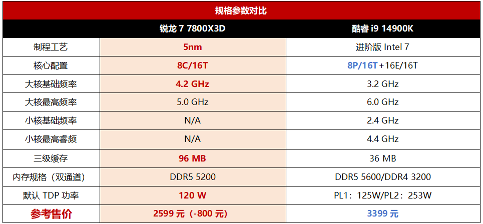 比规格:全大核不缩缸的锐龙7 7800X3D完胜