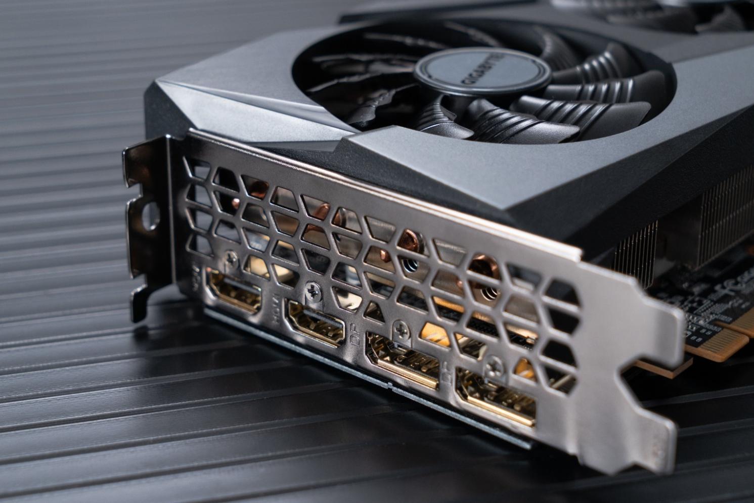显卡配置有4个显示输出接口,其中2个为DisplayPort 1.4a接口,另外2个为HDMI 2.1接口,4个接口都进行了镀金处理,完全能够满足主流玩家的使用需求,I/O挡板也有进行电镀处理,质感相当不错。