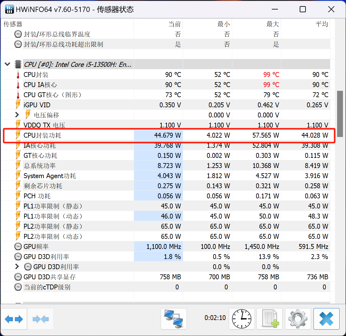 在18℃的室温内,我们对笔记本进行了CPU单烤测试,以考察其持续性能释放情况。在经过半小时的单烤测试之后,宏碁非凡Go Pro 的i5-13500H处理器功率能稳定在45W左右,表现不错。值得一提的是,即便处理器处于长时间满载的运行状态当中,宏碁非凡Go Pro 的风扇噪音也比较微弱,不会对使用体验造成不良的影响。