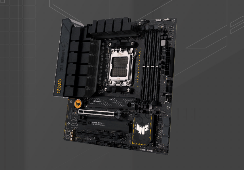 在其他硬件的选择上,为了风格的统一,我们尽量选择了华硕TUF全家桶产品。华硕TUF GAMING B650M-PLUS WIFI重炮手具备标志性的军事风格外观,采用了12+2相Dr.MOS整合型高效解决方案,单相输出电流高达60A,供电能力相当强悍。主板提供4条DDR5内存插槽,可以支持7600(OC)MT/s频率,获得更大的内存带宽,还提供了PCIe 5.0×4 M.2插槽,满足用户对于高速存储设备的需求。