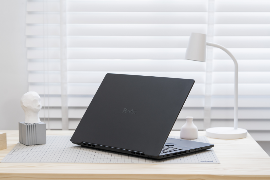 绝大部分创意工作者对笔记本的外观要求都是简洁不花哨,ProArt 创16 2022非常符合这点。它的机身通体为黑色,A面仅在中间印上了一个ProArt字母LOGO,初此之外别无其他元素,这种简洁而时尚的设计不仅是近两年笔记本的设计趋势,也契合了创意工作者的实用需求,你在任何场景下使用ProArt 创16 2022都不会显得突兀,比如教室、图书馆或者会议室都没问题——它看起来就像是一台沉稳内敛的大屏轻便本。