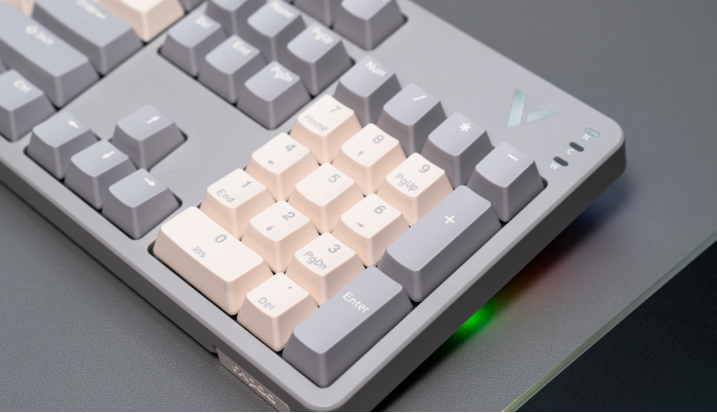 作为一款游戏键盘,雷柏V500PRO 2024版在正面搭载了按键背光灯、雷柏品牌LOGO灯,在两侧还设置有RGB灯带。值得一提的是,不同配色方案的灯效还略有不同:比如芝麻牛乳等双色配色的背光都是白色、曜岩黑为混光、白色为RGB,让键盘外观更具辨识度。