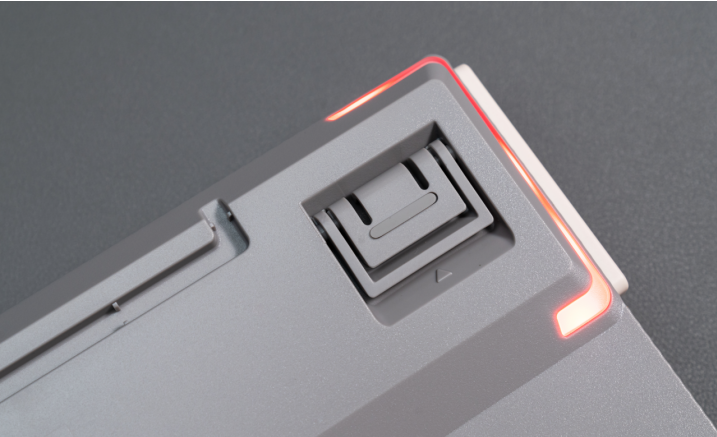 键盘背面非常的干净利落,本身就设计有一定的斜度,结合双段脚撑的支架,可以让玩家在三种高度上调节键盘,更好地满足更多玩家的需求。