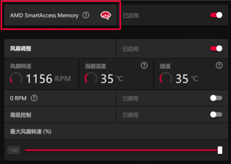 除此外,我们知道AMD平台还有一项可以明显提升显卡性能的黑科技,那就是SAM显存智取技术,测试中我们选择打开此项功能从而让显卡获得最佳的性能表现。从AMD驱动控制面板可以看到SAM的开启情况。锐龙3000以上处理器+500系主板+Radeon RX 6000显卡就能享受SAM技术了,我们也推荐玩家一定要开启这项功能。