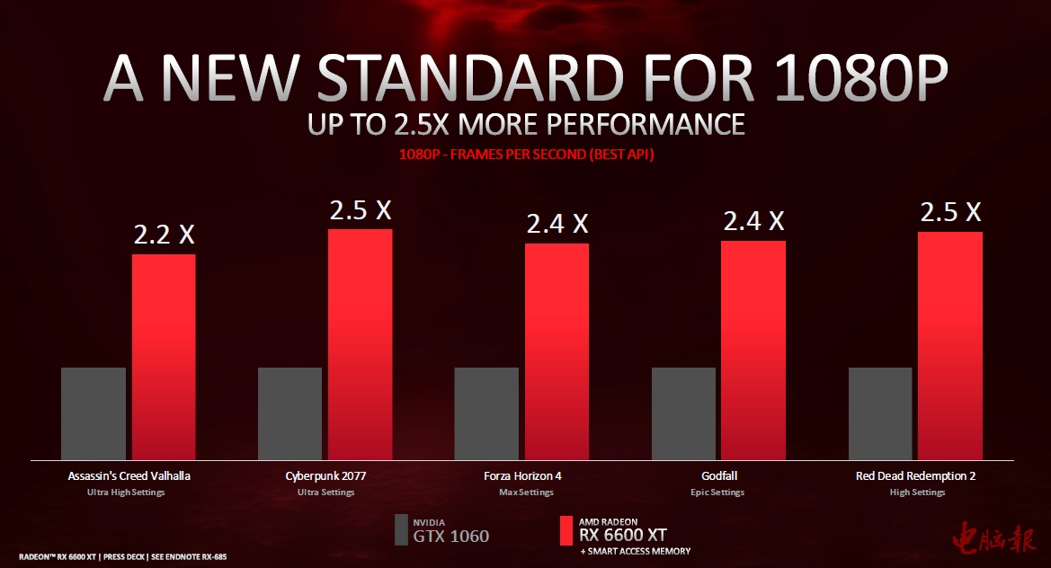 相比STEAM显卡霸主GTX 1060来说,RX 6600 XT可以提供近2.5倍的性能