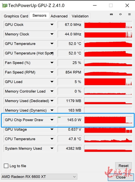 功耗方面,虽然RX 6600 XT的默认设计为160W,但XFX这块RX 6600 XT的FurMark考机功耗仅为145W,为了验证这一功耗表现,我们另外使用3DMARK TimeSpy的考机进行了测试,同样为145W。这样来看,RX 6600 XT不但在性能上超越了RTX 3060,同样在能耗比上也是大幅领先RTX 3060,A卡居然在这方面有优势,这在2年前的A卡上还是很难想象的,可以看出RDNA2架构确实有些过人之处。