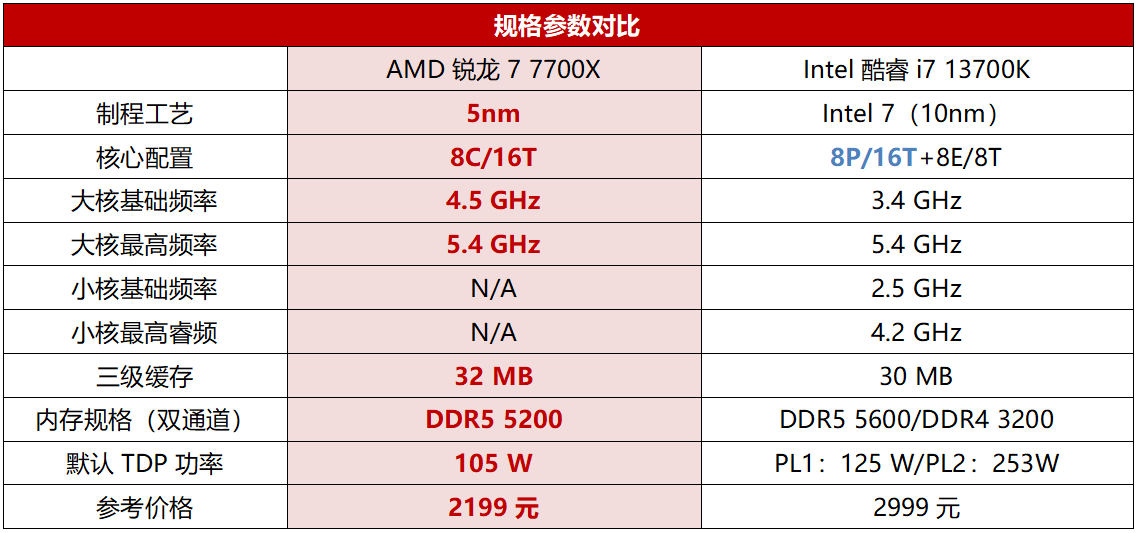 最近DIY配件价格优惠力度不小,加上不少重磅游戏很快就要上市,引发了新一波的装机热潮。对于追求顶级游戏性能的玩家装机来说,锐龙7000X3D系列处理器当然是最好的选择,而对于预算相对主流的玩家来讲,常规的高性价比8大核处理器则更加合适。目前AMD和Intel定位2000元级的8大核处理器中最受关注的当然就是锐龙7 7700X和酷睿i7 13700K,那针对游戏装机的话,这两者谁更值得选择呢?