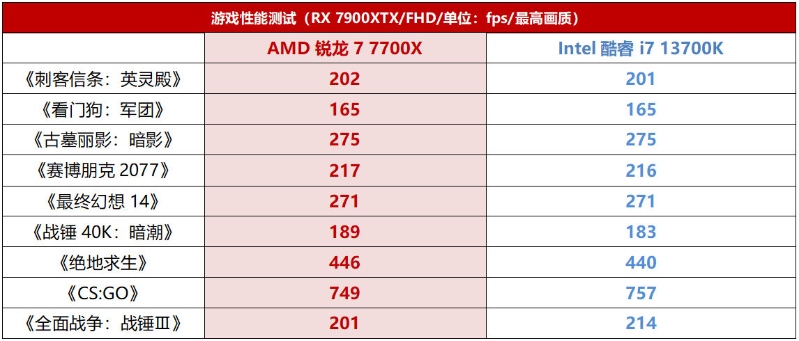 综上所述,对于8核U游戏装机来讲,锐龙7 7700X平台相比酷睿i7 13700K平台不但综合游戏性能更好、功耗更低,未来的升级空间也更大,价格优势更是领先了两个等级,那么还有什么理由不选它呢?