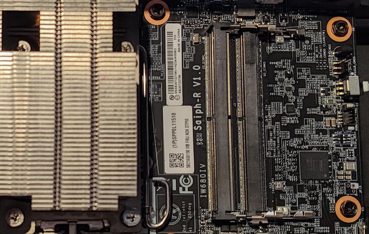 ▲在CPU的散热风扇下面是预留的两个内存插槽,ThinkStation P3 Ultra的内存扩展性非常强大:我们测试的是32GB内存款(16GB×2),本机已经占用了两个内存插槽,还有两个内存插槽可用,一共是4内存插槽,最大支持128GB内存,对于这样的小个子机身来说,相当富裕!而如此充裕的内存扩展,不管是轻量级办公,还是重度多开应用,都能轻松胜任。