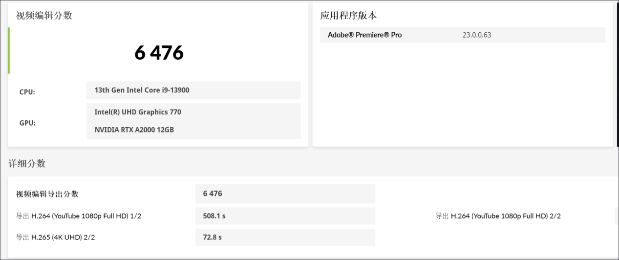 近几年是短视频爆发的时代,应用十分广泛。作为企事业用户,或者个人工作室,剪辑短视频成为了常见的工作流,UL Procyon的视频基准测试即是考查电脑视频剪辑综合能力的项目,ThinkStation P3 Ultra的测试分数是6476,在NVIDIA RTX A2000专业独显的加持下,该机能够高效率应对视频编辑。作为对比,如果是无独显的核显机型,跑该项测试只有不到4000分。说通俗点就是,在视频导出阶段,无GPU加速会耗费大量的等待时间,严重拖慢工作效率。