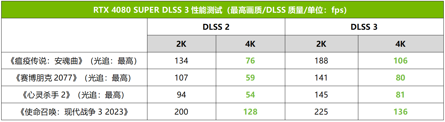 刚才我们看到4K极限画质下《赛博朋克2077》《心灵杀手2》《瘟疫传说:安魂曲》对RTX 4080 SUPER还有些压力,但是在开启FSR3之后,大家可以看到,RTX 4080 SUPER可以完全搞定这三款硬件杀手,平均帧率达到80fps以上,流畅度直接提升了不止一个档次。可见,如果游戏支持DLSS 3,那么RTX 40 GPU用户一定要开启它获得巨大的性能提升。