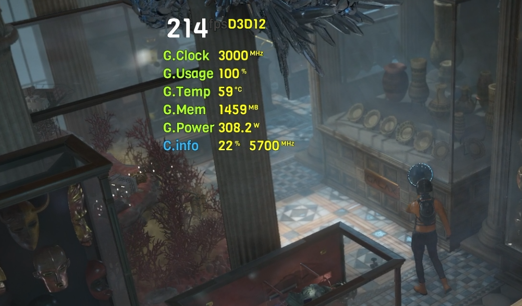 我们对TUF GAMING RTX 4080 SUPER进行了简单的超频,将核心频率提升了280MHz、显存提升了300MHz,可以看到在3DMark TimeSpy测试中它的核心频率已经达到了3GHz,实测TimeSpy GPU得分达到29890,相对默认频率成绩进一步提升。