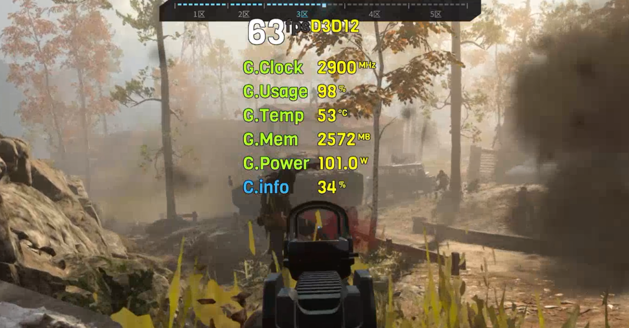 ▲Radeon 780M在《使命召唤:现代战争3 2023》测试中,即便是激战场景帧率也可以保持在60fps以上