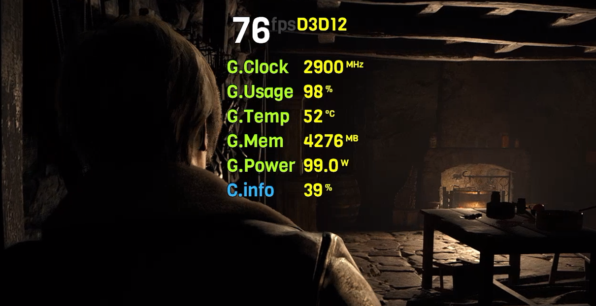 ▲Radeon 780M在《生化危机4:重制版》室内场景帧率可以保持在70fps以上,多数室外场景也接近60fps