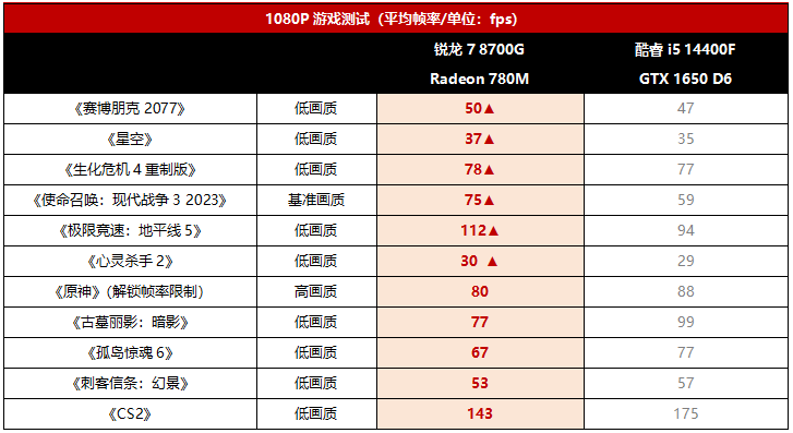 锐龙7 8700G核显游戏实战:新游戏中明显优于GTX 1650 D6