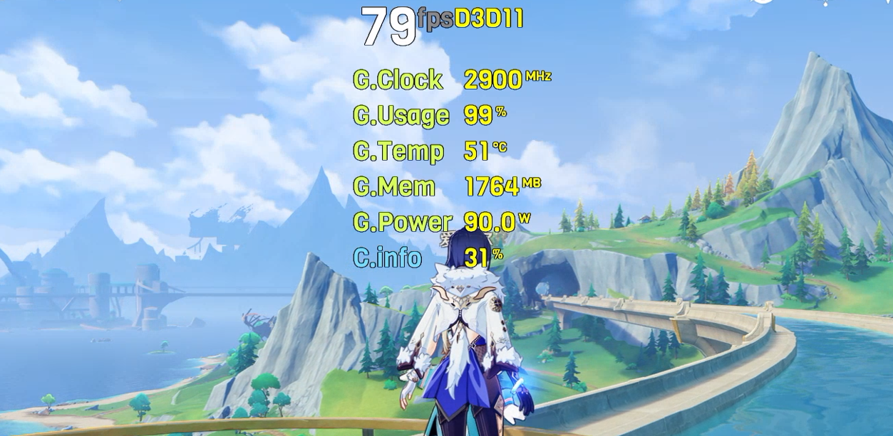 ▲Radeon 780M让解锁帧率的《原神》达到80fps左右也是很轻松的,因此平时玩达到60fps上限毫无压力