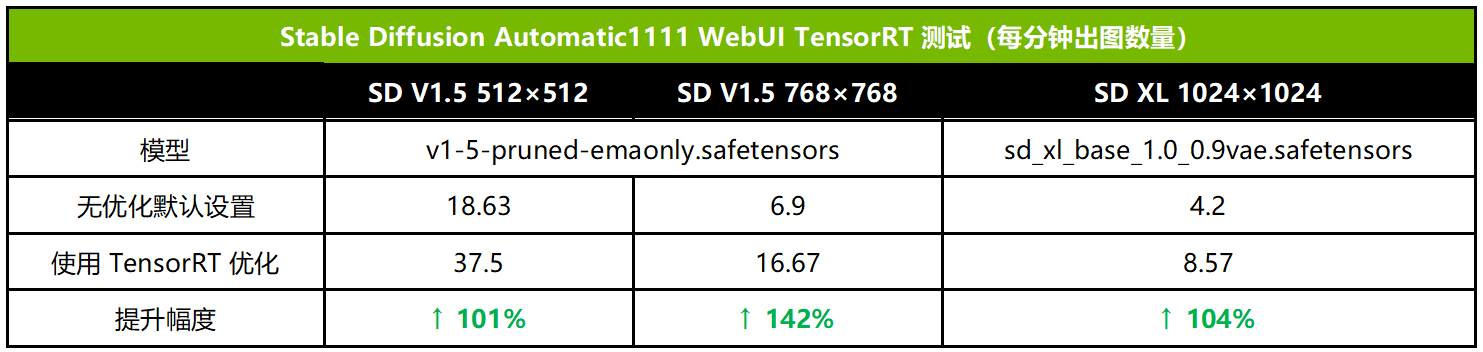 ▲在Stable Diffusion中使用NVIDIA TensorRT优化的Unet以大幅提升RTX 40 GPU的出图效率