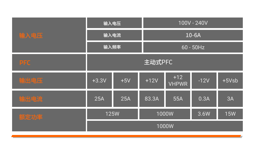 +12V额定总功率:1000W