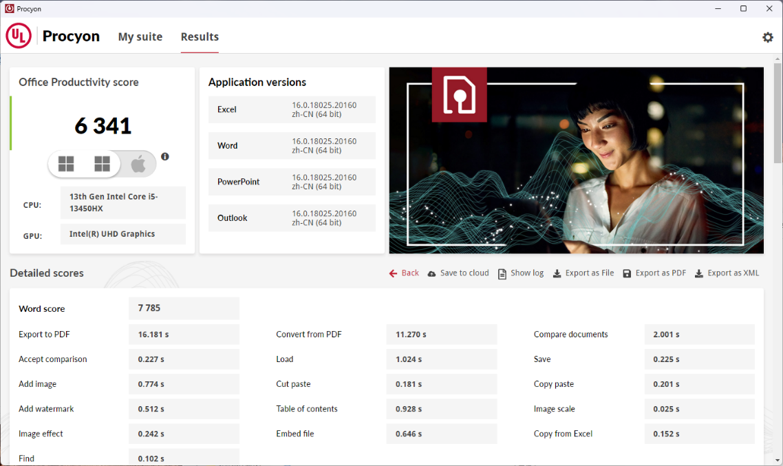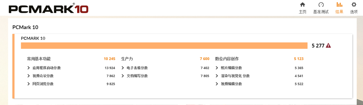 在体现整机综合性能的PCMark 10现代办公测试中,尔英商务主机整体得分为5277,其中常用基本功能得分10245,生产力得分7600,数字内容创作得分5123。从测试分数来看,在Office办公等日常应用中,尔英商务主机的性能表现相当出色,但受限于13450HX的低配核显,应对照片编辑、视觉渲染等高显卡需求应用,性能水准低于搭载Xe核显的13500H处理器办公本。