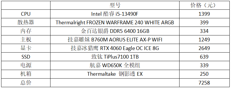 在CPU的选择上,虽说i5-14490F已经上市了,但站长此次推荐的依然是i5-13490F。原因在于i5-13490F在核心配置上,比如6P+4E总共10核16线程规格、24MB三级缓存等方面都是相同的,差别仅仅在于性能核与能效核的最高频率分别只差0.1GHz和0.2GHz,其实差距有限,但是价格相差了200元,个人觉得从性价比的角度来说选择i5-13490F更好。