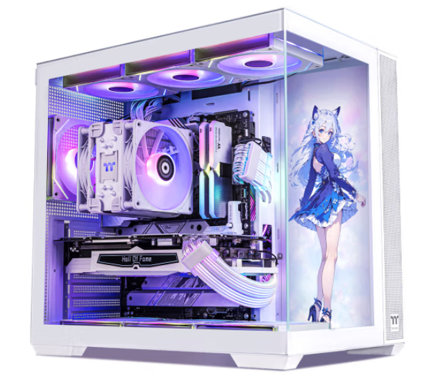 为了将技嘉雕妹B760M AORUS ELITE AX-P WIFI等硬件的高颜值外观充分地呈现出来,选择了Thermaltake 钢影透EX。这款产品采用了“海景房”结构,前面板和侧面板无立柱拼接,实现了270°全景透视,尽情展示内部硬件。而且现在下单还赠送二次元磁吸立牌,进一步提升了主机的二次元风格。散热方面,机箱在前面板、背部、顶部以及底部都设置了大面积的散热孔,能大幅增加机箱内外空气交换的效率,配合预留的10个风扇位,带来更强的散热表现。