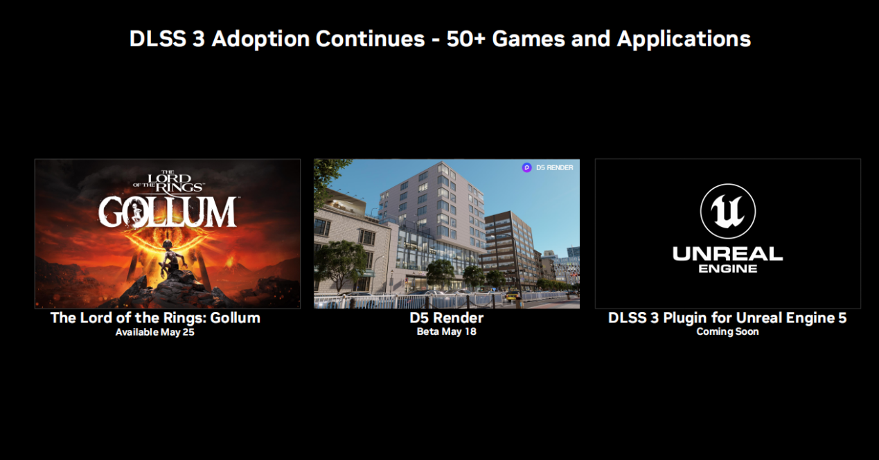 DLSS 3得到了非常多世界领先的开发团队与引擎的支持,目前已经有超过30款游戏与应用宣布加入对DLSS 3的支持。此外,值得一提的是大家熟悉的DLSS 2超分辨率目前也已经得到了超过300款游戏和应用的支持,其中包括Unreal Engine和Unity的插件——这两大3D引擎也是应用非常广泛的。