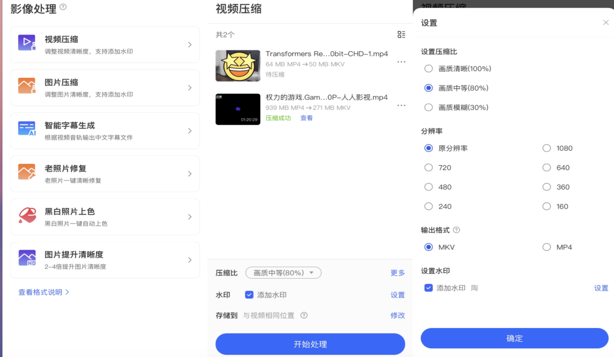 在这里编辑还要隆重介绍一下只有手机App有的功能,那就是影像处理。那些办公软件需要买会员才有的功能,譬如图片压缩、视频压缩、智能字幕生成、老照片修复、黑白照片上色、图片提升清晰度等功能都能在Q4上轻松完成。