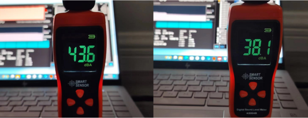 室温22℃左右,利用Aida64对星Book Pro 14进行烤机测试(稍微垫高机身)。在性能模式下,该机的处理器稳定输出状态是:45W/95℃,此时用户位风扇噪声大约43.6分贝。而在平衡模式下,该机处理器的温度输出状态是30W/77℃,用户位噪声大约只有38分贝左右。