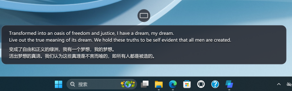 ▲字幕翻译体验,《I have a dream》这篇课文大家都应该都不陌生,这是牛叔利用星Book Pro 14播放视频,惠小微根据演讲录像实时记录并即时翻译的,这句话相信大家还是很熟悉的吧。当然由于是“机翻”,没有文学上的润色,所以翻译出来肯定不算完美,不过也很接近了。