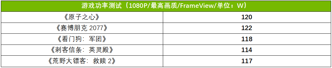 能效比是RTX 4060的一大亮点,具体到这款ROG STRIX RTX 4060上,我们用FrameView工具在游戏中记录并计算出平均功率。从结果来看,ROG STRIX RTX 4060的游戏平均功率在118W左右,远低于RTX 3060,能效比表现出色。