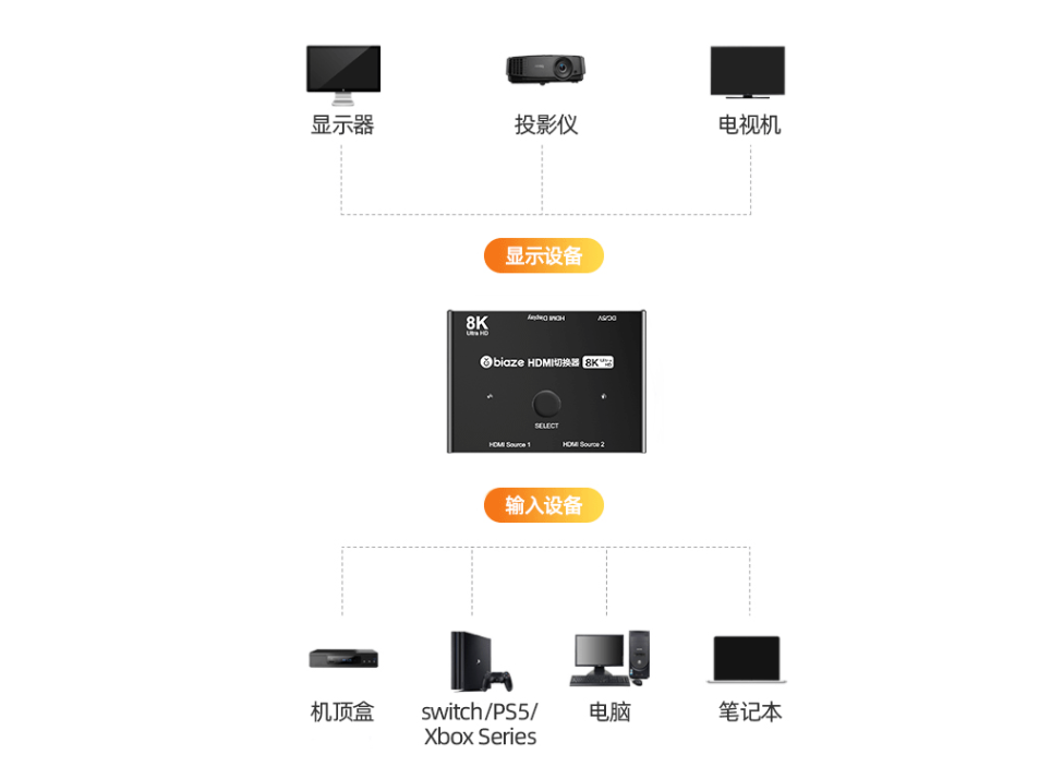 多组HDMI 2.1信号输入的问题:对于XBOX和PS5主机双修或者想连接PC玩游戏的玩家来说,电视/投影上单HDMI 2.1甚至双HDMI 2.1接口的配置都不一定能满足需求。这种情况有两种解决方案,一种是利用高端次世代功放上的多个HDMI 2.1接口来实现多设备信号切换,成本较高。另一种是购买HDMI 2.1信号切换器(多进一出版本),但是必须注意信号切换器的带宽是否为48Gbps以及是否支持游戏必备的VRR/ALLM功能等。