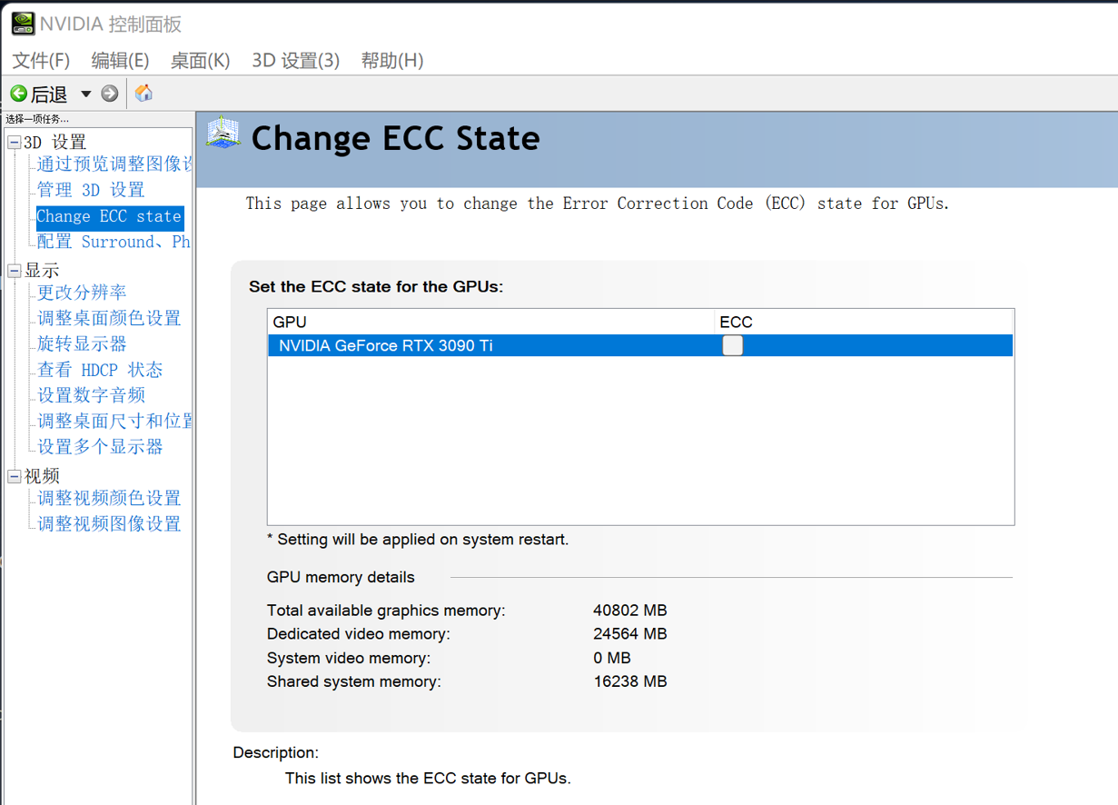 玩家可以在驱动中自行开启/关闭RTX 3090 Ti的显存ECC功能