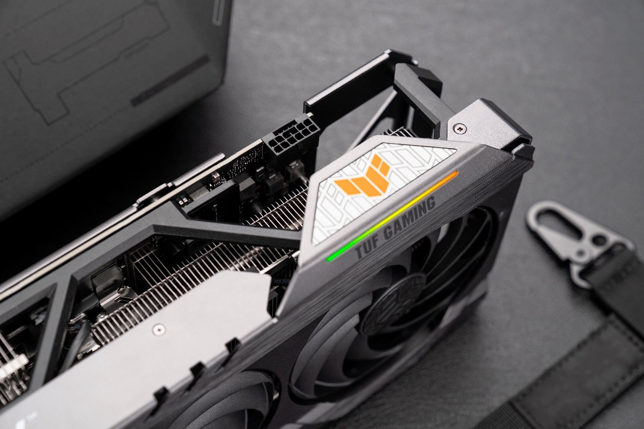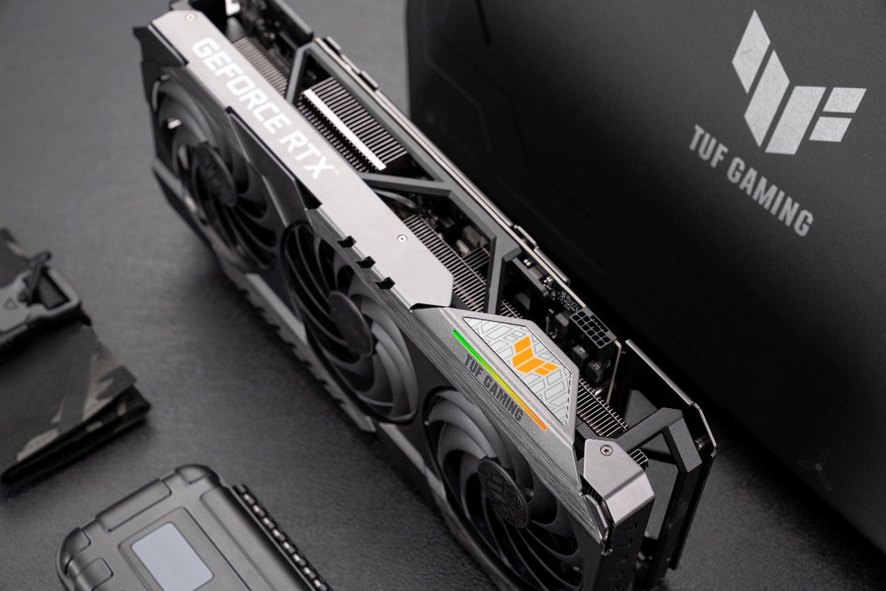 华硕TUF-RTX3090TI-O24G-GAMING是首批上市的旗舰非公版RTX 3090 Ti显卡,它采用了新一代的TUF GAMING设计美学,核心频率高达1950MHz(OC模式),全自动化制程工艺打造的PCB配合超合金供电,在满足GPU高功耗需求的同时,也为玩家们提供更高频的巅峰性能体验。3.2槽MaxContact散热器拥有新一代多扇叶轴流风扇+中心风扇反转设计,配合独立显存散热模组、背板通风口等,可以更好的利用气流,提供高效散热能力,助力玩家在4K甚至8K游戏中所向披靡。