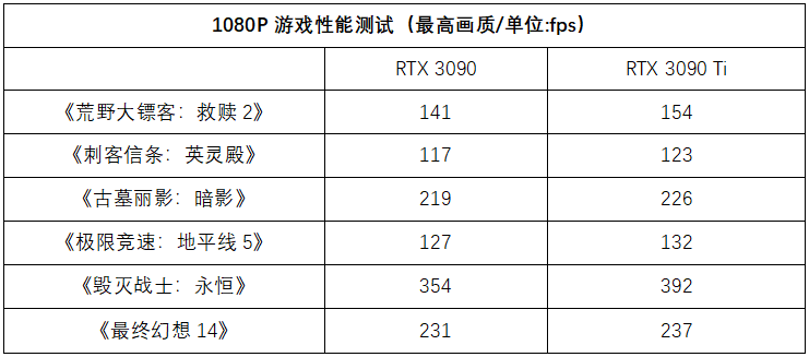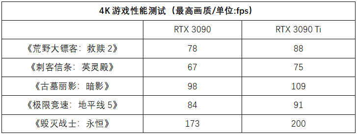 虽然但从核心规模上看,RTX 3090 Ti仅比RTX 3090多了2.4%,但通过核心单元数量、核心频率和显存频率的多方面同时作用,将让RTX 3090 Ti在高分辨率游戏中进一步减少瓶颈,带来明显的游戏性能提升。