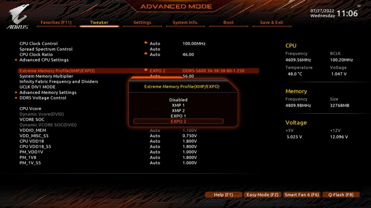 而在内存支持部分,X670小雕AX不但优化了布线,还配备了SMD贴片工艺插槽与8层2盎司铜PCB,因此电气性能突出,高频适应能力出色,轻松支持DDR5 6000+内存。同时,主板BIOS还提供了对XMP和AMD EXPO内存的双支持。除此外,X670小雕AX的BIOS还提供了“低延迟支持”和“高带宽支持”,可以进一步提升内存性能表现,实测最多可降低3ns延迟和提升12%带宽。
