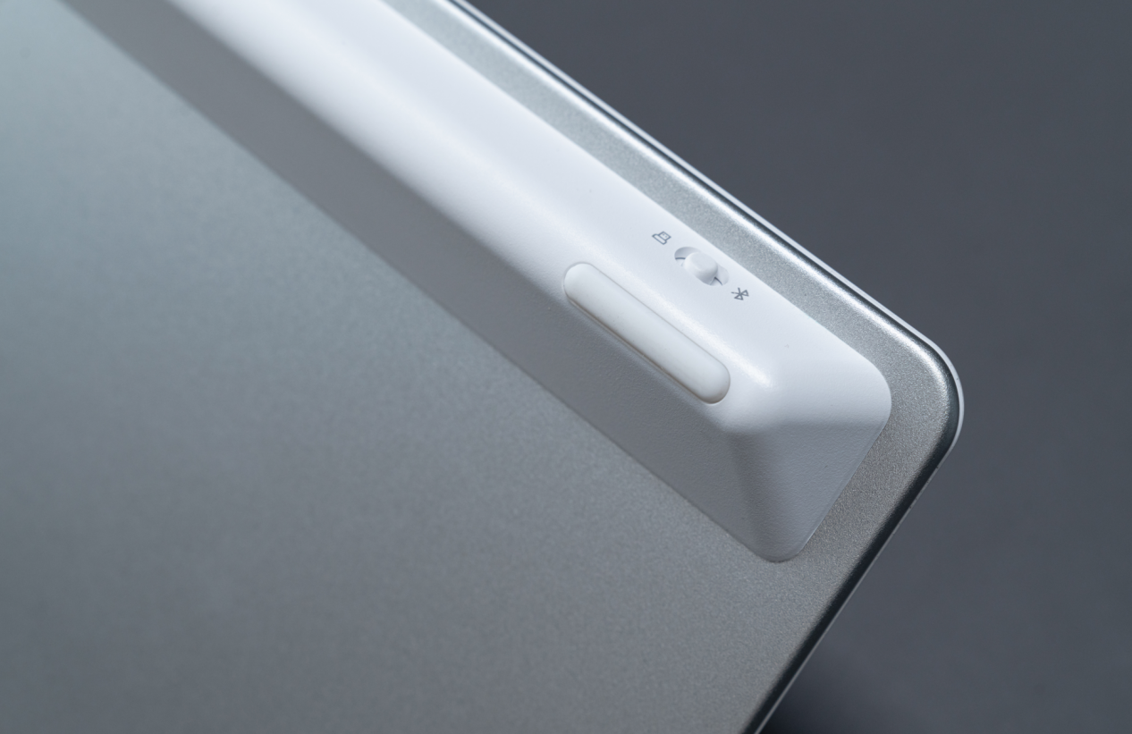 因为采用了110键全键盘布局再加上一体式掌托的设计,使得雷柏E9500G的机身尺寸达到了423mm×143mm×20mm,成为整个刀锋系列2024版中尺寸最大的一款。在此情况下,机身最薄处尺寸从上代产品的5mm降低到了3.9mm,可以说将无线键盘的轻薄程度做到了极致,不占空间、移动方便。