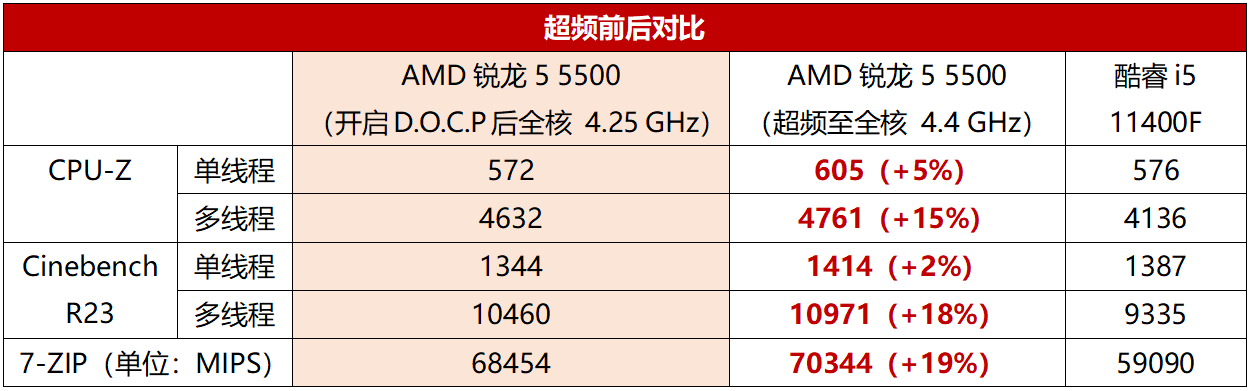 锐龙5 5500综合性能领先,超频可玩性更高