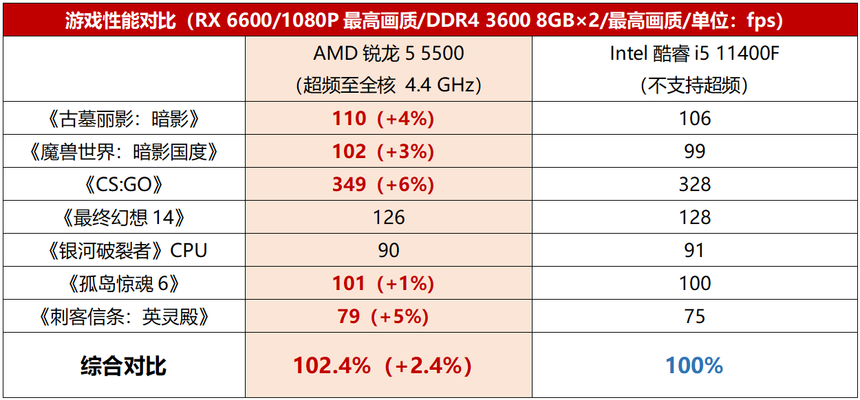 现在来简单总结一下主流装机选择锐龙5 5500相对酷睿i5 11400F的优势。