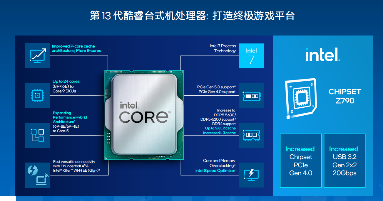 Intel对第13代酷睿总结了4大“香”点、共13大亮点。包括“平台实力香”、“游戏玩得香”、“超频体验香”、“挥洒创意香”,总之就是包含了玩家和设计师用户最关注的点,带来更高执行效率和更好使用体验。