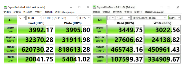 △左为WD Blue SN580成绩,右为WD Blue SN570成绩