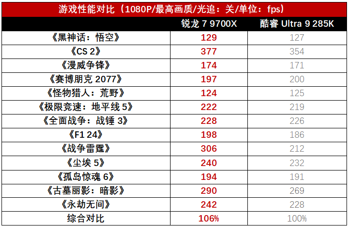 游戏实测:锐龙7 9700X游戏超越竞品旗舰