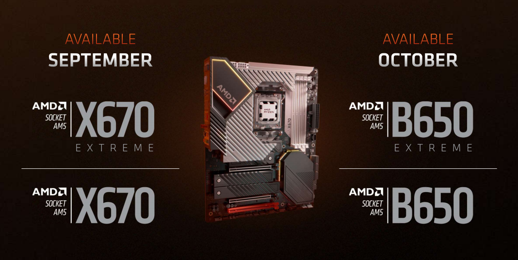 锐龙7000搭配的主板部分,AMD发布了四款600系主板芯片(组),包括X670/X670 Extreme(采用双芯片组合)和B650/B650 Extreme,其中Extreme的版本面向发烧玩家和高性能用户。例如顶级旗舰X670 Extreme就支持双PCIe 5.0显卡插槽和双PCIe 5.0 M.2插座,还拥有600系主板中最强的超频能力。此外,X670和B650 Extreme至少标配1条PCIe 5.0显卡插槽和1个PCIe 5.0 M.2插座;B650至少标配1个PCIe 5.0 M.2插座。