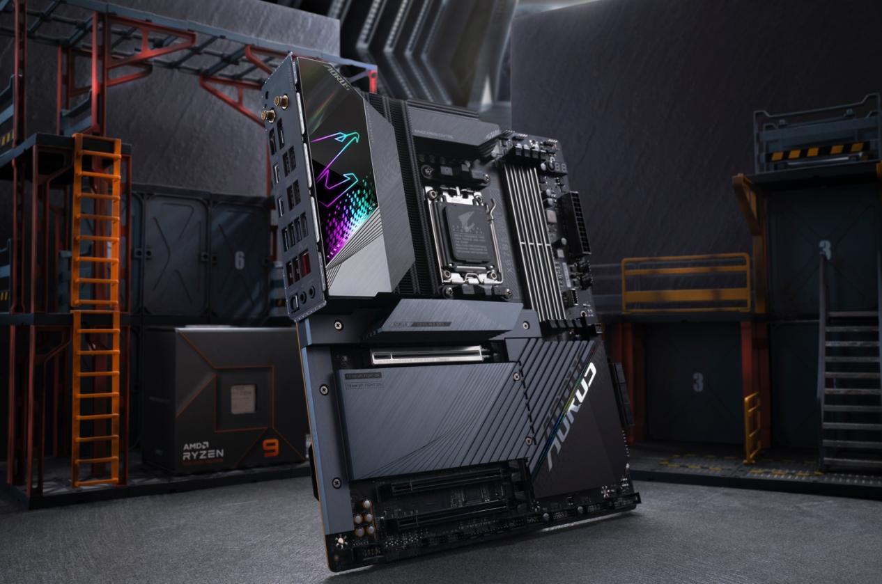 测试平台的主板方面,我们选用了技嘉X670E AORUS MASTER超级雕。它采用AMD 600系主板芯片中最高端的X670 Extreme双芯片组合,搭载了豪华的16+2+2相数字供电,其中16相处理器供电更是配备了105A MOSFET芯片,连2相核显供电和2相辅助供电也配备了90A MOSFET芯片,达到了顶级旗舰的水平。此外,主板还搭载了技嘉AOCT技术,可以智能切换预设的PBO和全核手动超频模式,不管是吃单核性能的游戏应用还是吃多线程性能的专业应用,都可以让锐龙7000以最佳的频率状态进行应对。