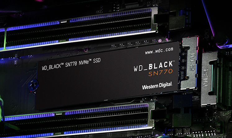 为了能让整个平台的性能得以充分释放,我们为其选择了PCIe 4.0 M.2 SSD——WD_BLACK SN770 NVMe SSD 1TB。产品采用基于 HMB(Host Memory Buffer)技术的 DRAM-less 控制芯片设计,用主机DRAM缓存映射信息,给固态硬盘加速。1TB容量提供5150MB/s的顺序读取速度,4900MB/s的顺序写入速度,还有740K的随机读取以及800K的随机写入IOPS能力,游戏加载性能提升,且传输稳定。由于近期NAND闪存颗粒的价格一直在降,所以SSD产品也降价了。WD_BLACK SN770 NVMe SSD 1TB现在不到700元就能买到,跟一些PCIe 3.0 M.2 SSD价格都差不多了。