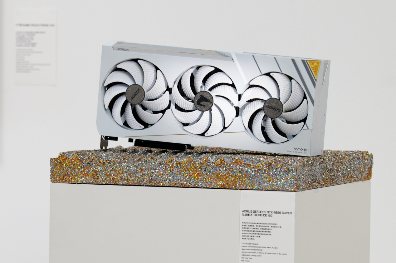 与Z790 AORUS XTREME X ICE钛金雕主板相呼应的是AORUS GeForce RTX 4080 SUPER XTREME ICE 16G钛金雕显卡。该显卡采用了和主板一样的设计风格,外包装也使用了一致的设计。