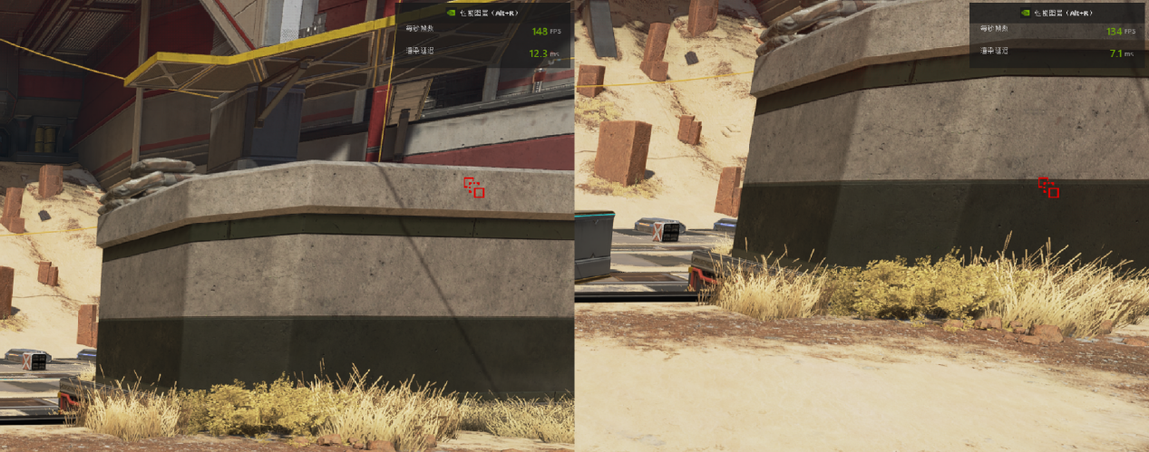 ▲左侧是关闭Reflex,渲染延迟12.3ms。右侧是开启Reflex增强,渲染延迟降低到了7.1ms。