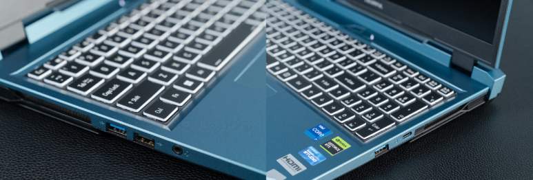 说到外观,隐星P16外观比较独特的一点是,如大家所见,它的A、C两面为游戏本中少见的蓝色配色,相比6000元价位常见的傻大黑粗型游戏本,显得更有设计感和档次感。
