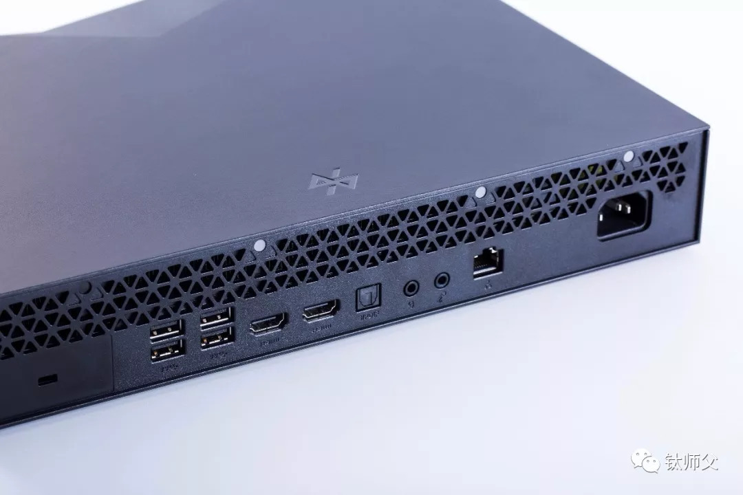 除了前面板有2个USB 2.0接口之外,小霸王 Z+的其他接口都设置在了机身的背面,提供了包括4个USB 3.0接口、2个HDMI 2.0接口、1个光纤接口、1个话筒接口、1个耳机接口以及1个RJ 45网线接口。接口的类型还是比较的丰富,满足日常使用需求问题不大。不过笔者觉得如果考虑到与游戏显示器接驳的话,没有DP接口是个小遗憾(HDMI 2.0虽然也能传输144Hz,但带HDMI 2.0的显示器却不多)。