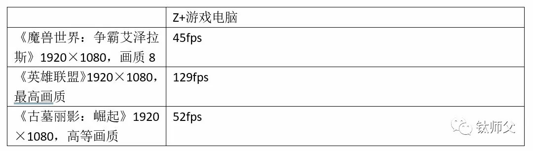 Z+新游戏电脑中的这颗定制处理器的性能表现还是不错的,在1080P分辨率和最高画质下运行《英雄联盟》能获得将近130fps的高帧速,画面非常流畅。而在《魔兽世界:争霸艾泽拉斯》和《古墓丽影:崛起》中,即便将画质设置到高水准,也能获得不错的画面平均帧速,这表明在面对网游和对硬件要求相对较低的单机游戏时,Z+新游戏电脑的性能完全可以一战。